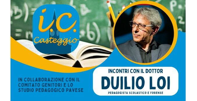 L’Istituto Comprensivo di Casteggio, in collaborazione con il Comitato Genitori e lo Studio Pedagogico Pavese, è lieto di invitare tutte le famiglie a due serate di approfondimento e dialogo con il Dott. Duilio Loi, pedagogista scolastico e forense.